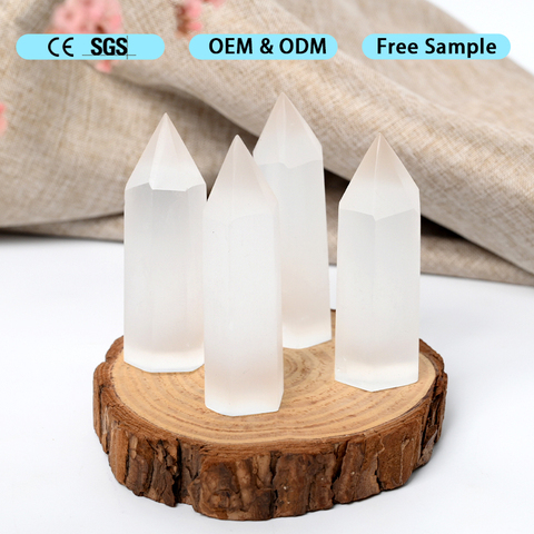 Colonne décorative polie de tour de cristal de sélénite blanche pour la maison Feng Shui pour la mascotte de Noël du nouvel an chinois